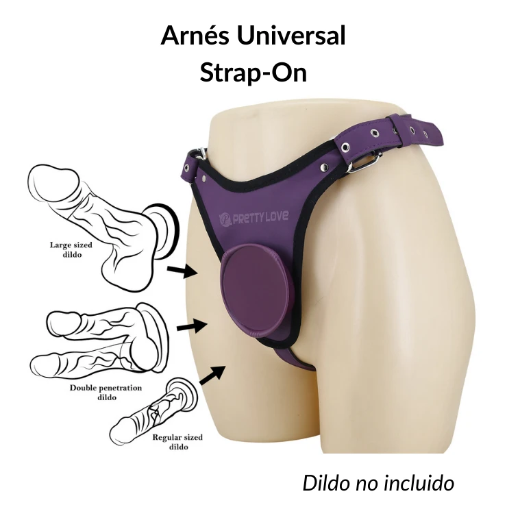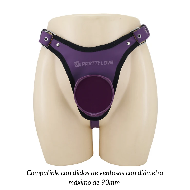Arnés universal strap-on Pretty Love Caludio I, diseñado para facilitar el uso de dildos o vibradores con ventosa sin complicaciones. Su innovador sistema Press & Play elimina la necesidad de O-rings o broches, permitiéndote cambiar de juguete rápida y fácilmente para centrarte solo en el placer 😌.
