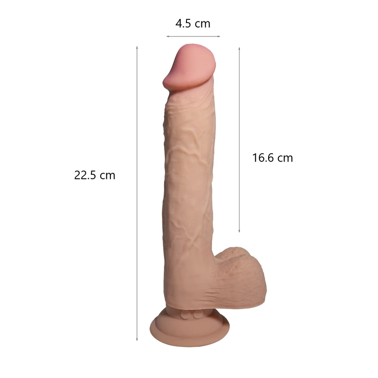 Fabricado en silicona corporal suave y ultra realista, su tacto imita la piel natural, mientras su diseño anatómico —con cabeza bien definida, venas marcadas y testículos firmes— brinda una experiencia visual y sensorial increíblemente auténtica. El control remoto inalámbrico de este consolador con rotación permite manejar cada función con comodidad, ideal para juegos en solitario o para compartir el control en pareja.