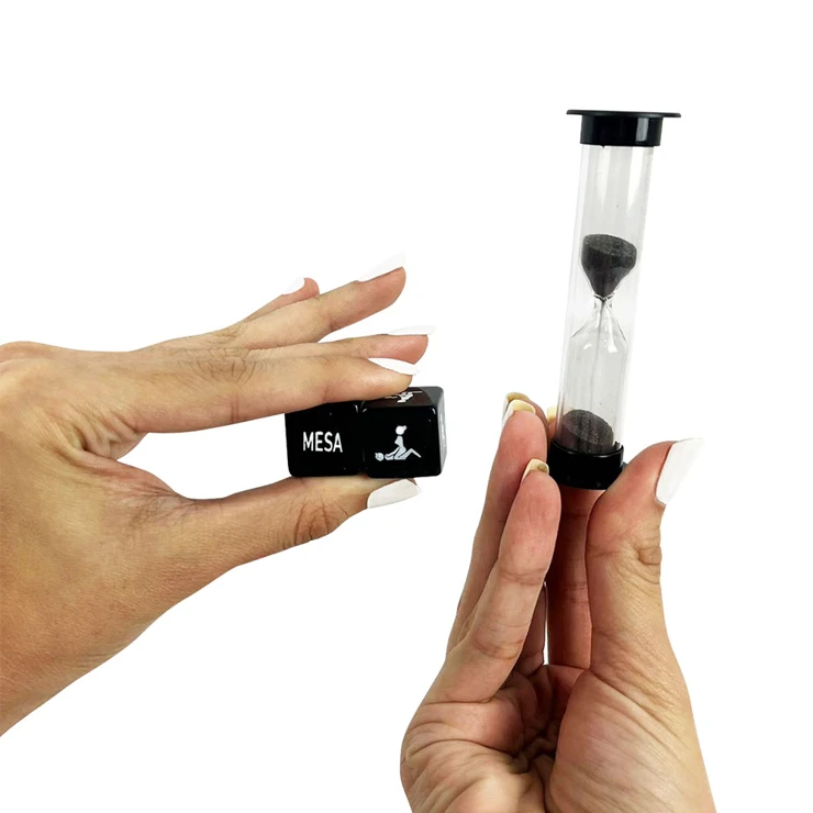 El juego es simple pero excitante: solo tienes que lanzar los dados, descubrir la acción y la posición que el destino elija 🎲, y dejar que el reloj de arena marque el tiempo ⏳. La adrenalina de cumplir el reto antes de que los granos caigan hará que cada momento sea más intenso y divertido.