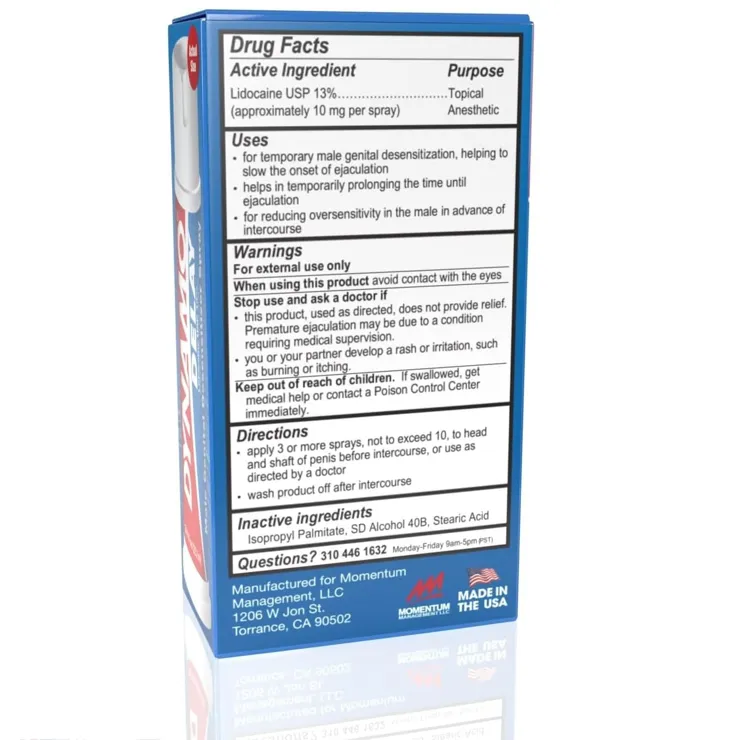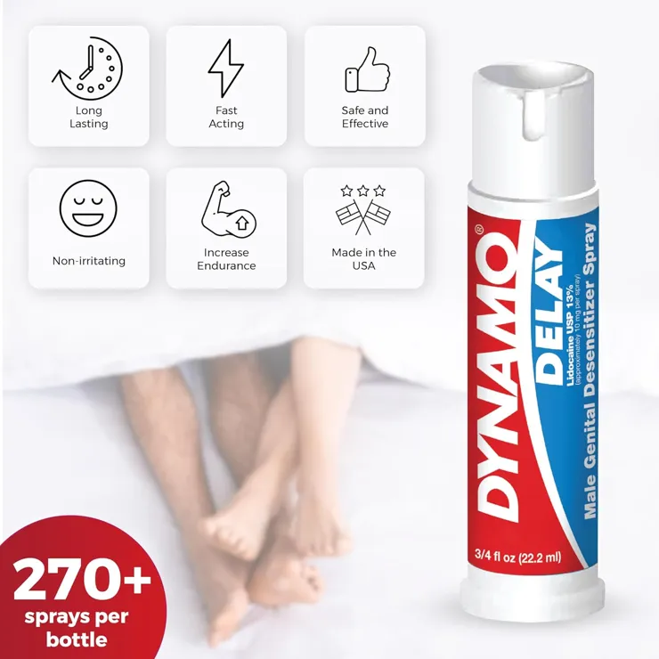 Lleva tus encuentros al siguiente nivel con Dynamo Delay, el spray retardante masculino de acción rápida especialmente formulado para hombres que buscan prolongar el placer y controlar la eyaculación precoz. Su fórmula contiene 13% de lidocaína USP, un anestésico seguro que reduce la sensibilidad del pene para ayudarte a durar más sin perder sensaciones.