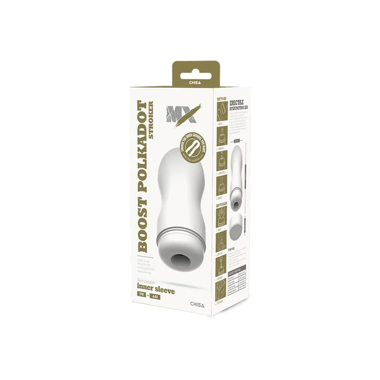 Ideal tanto para el disfrute diario como para entrenar la resistencia y mejorar el rendimiento, el masturbador masculino Boost Polkadot Stroker estimula de forma precisa las zonas más sensibles gracias a sus múltiples filas de nodos y relieves internos. Además, su funda interna es extraíble y reemplazable, lo que prolonga la vida útil del producto y facilita su limpieza.