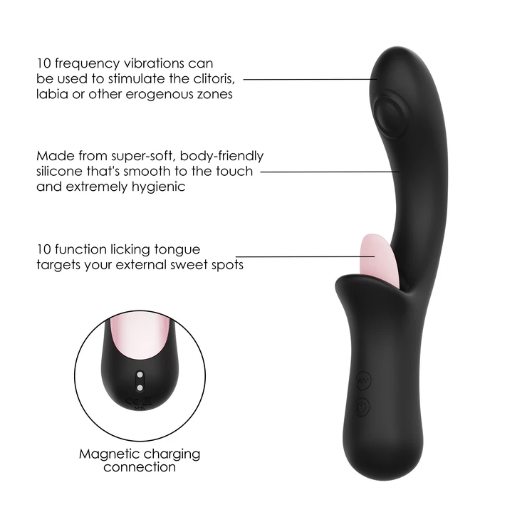 Este vibrador rabbit femenino 3 en 1 combina la tecnología más avanzada con un diseño ergonómico y sensual, estimulando simultáneamente el clítoris, el punto G y los labios vaginales gracias a su lengua vibrante con movimiento realista y su doble motor independiente 😍.